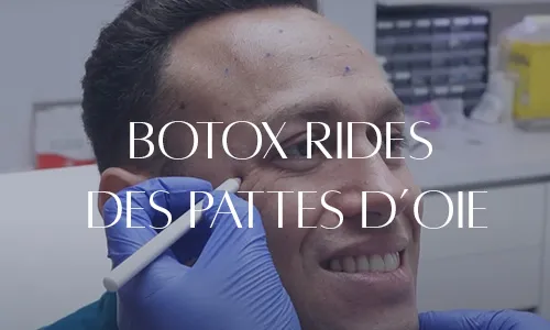 Correction des rides d'expression sur différentes zones : front, glabelle, pattes d’oie, et autres.